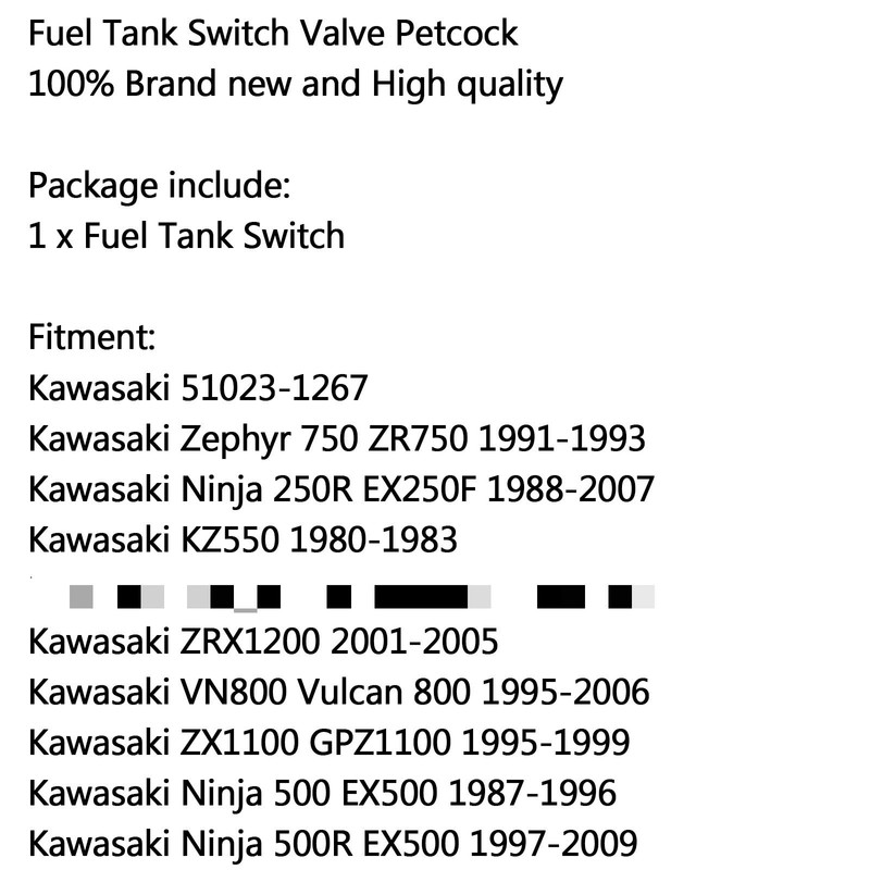 Topteng Motorcycle Accessories Fuel Tap Aluminium Black for Kawasaki Vulcan 500 Zephyr 750 Ninja 500R