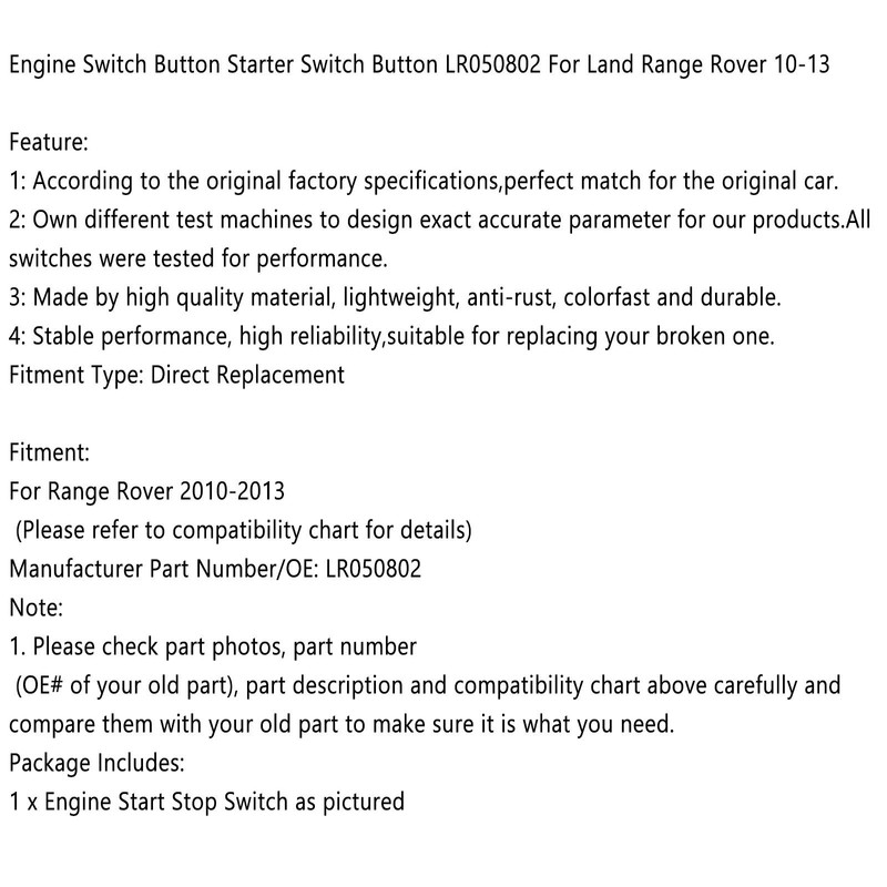 Engine Switch Button Starter Switch Button LR050802 For Land Range Rover 10-13