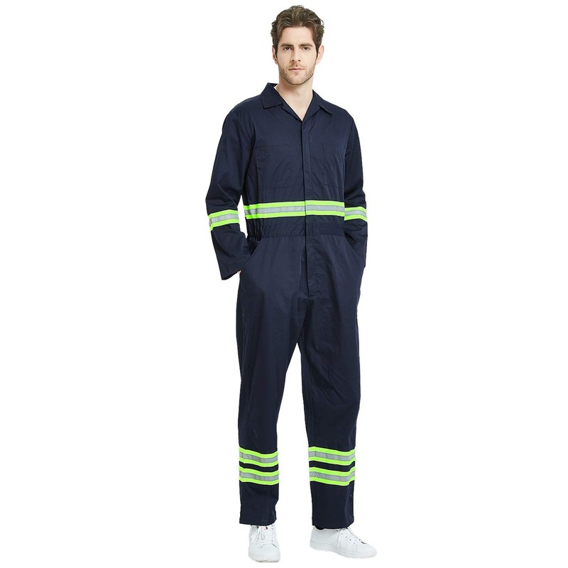 TopTie Men's Work Coverall High Visibility Coverall with Reflective Trim-Navy-XL Regular