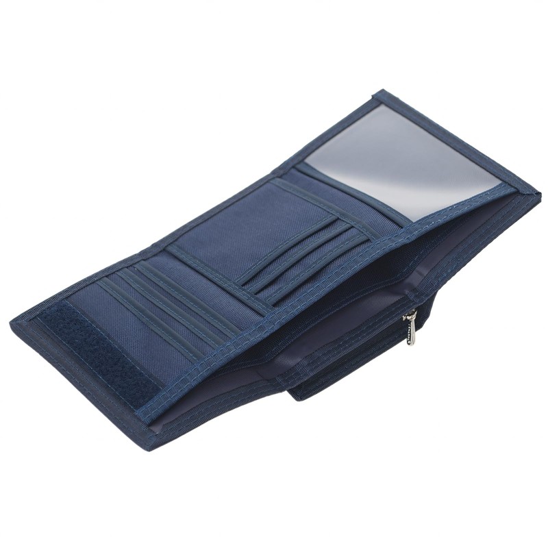 TOPTIE Mens Trifold Wallets with Zipper Coin Pocket, Canvas Billfold with ID Window-Blue-1Pcs