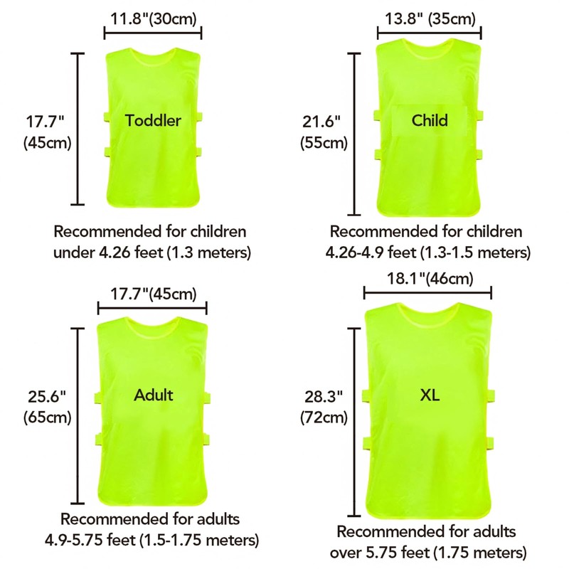 - Multiple sizes: we offer four sizes of sports pinnies that are suitable for different people, infants, children, adults and plus sizes.