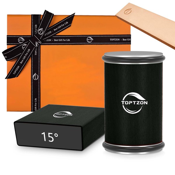 Toptzon Diamond Black Rolling Knife Sharpener – Roller Knife Sharpener Kit with 15 & 20 Degree Magnetic Angle Stand & Leather Strop Paddle Kit - Easy Sharpening for Kitchen Knife (Modern Black)