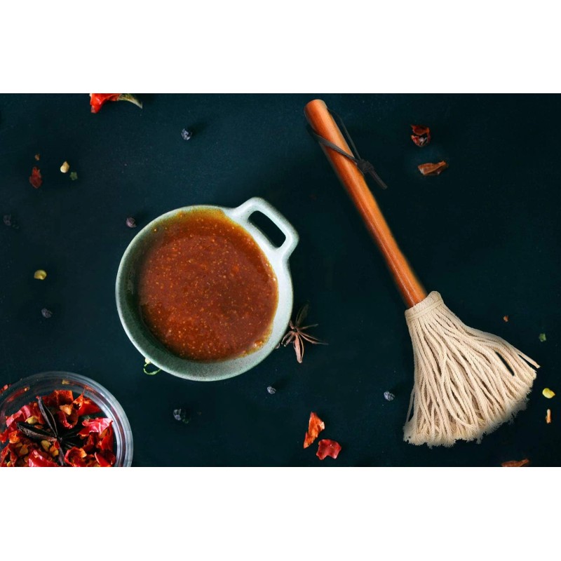 - Wood handle sauce mop, long enough and sturdy. Very comfortable to use.