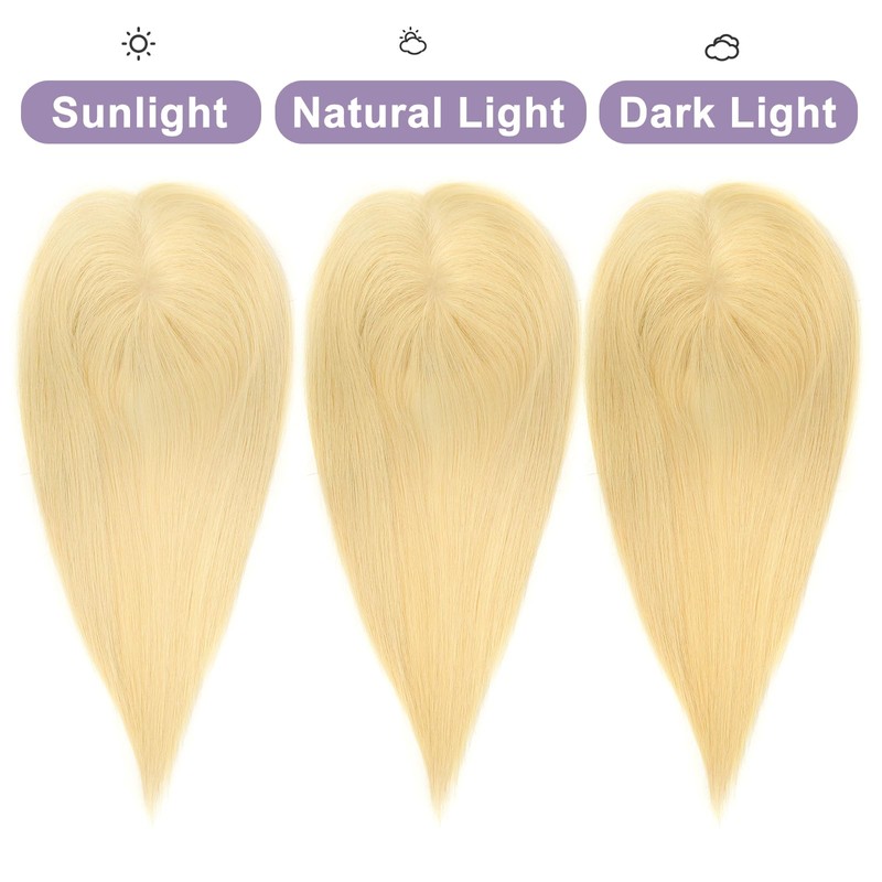 Topunique #613 Bleach Blonde 12 Inch Real Human Hair Topper, 4.5x5 Inch Swiss Lace Base No Bangs Hair Toppers for Women