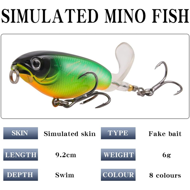 Topwater Fishing Lures Bass Lures with Floating Tractor Rotating Tail Barb Treble Hooks Artificial Hard Bait Swimbait Lures Surface Crankbait for Bass Trout Walleye Pike Musky Fishing Topwater Lures