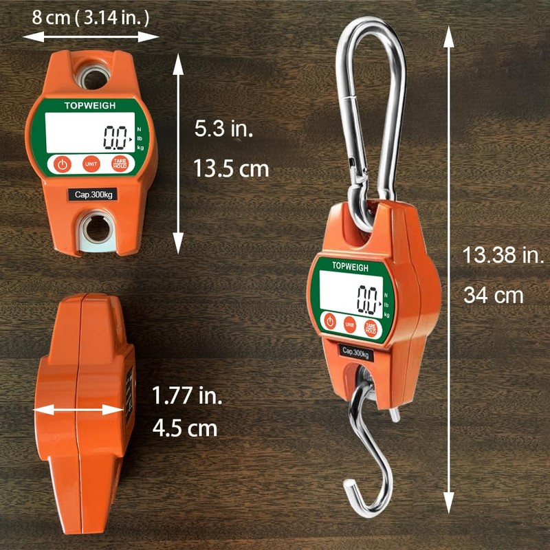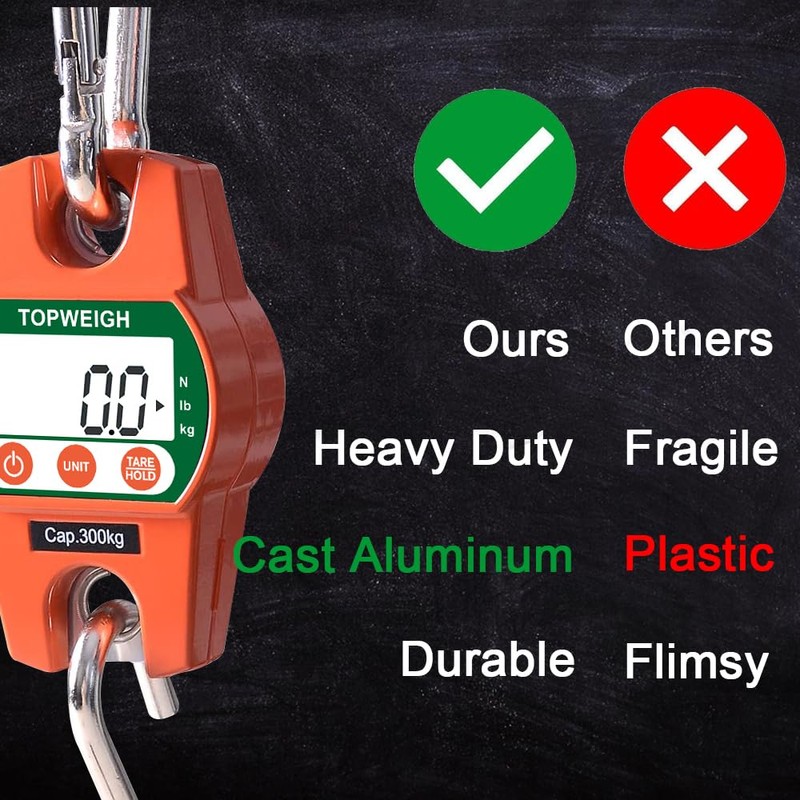 - Cast aluminum case: The hanging scale is made of cast aluminum, which is solid and robust. 3 weighing units: kg / lb / N