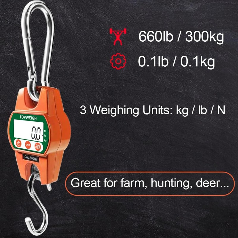 - Versatile and Accurate: The hanging weight scale features tare function and hold reading function , it's great for farm, weighing deer, hunting and so on