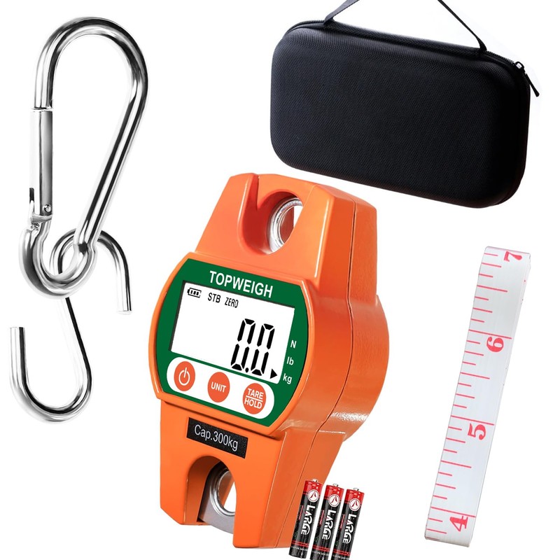 TOPWEIGH Mini Crane Scale, Cast Aluminum Case, Digital Hanging Scale with Hooks, 600lb / 300kg, Large Backlight Display, Storage Case, Hanging Scales for Farm Hunting Deer, Hold Reading Function