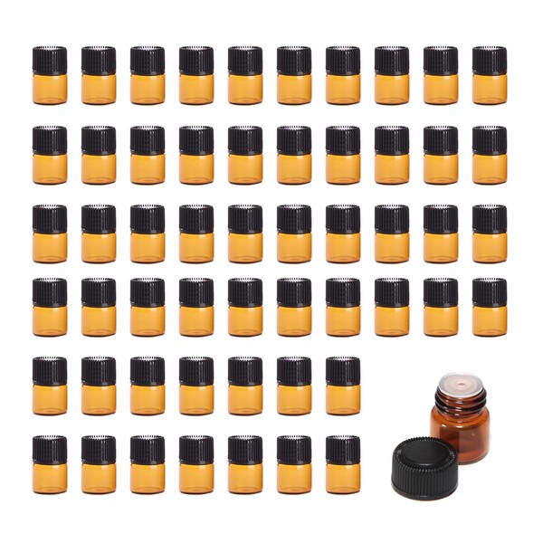 TOPWEL 100pcs (1/4 dram) 1ml Amber Glass Essential Oil Bottle with Orifice Reducer and cap (100)