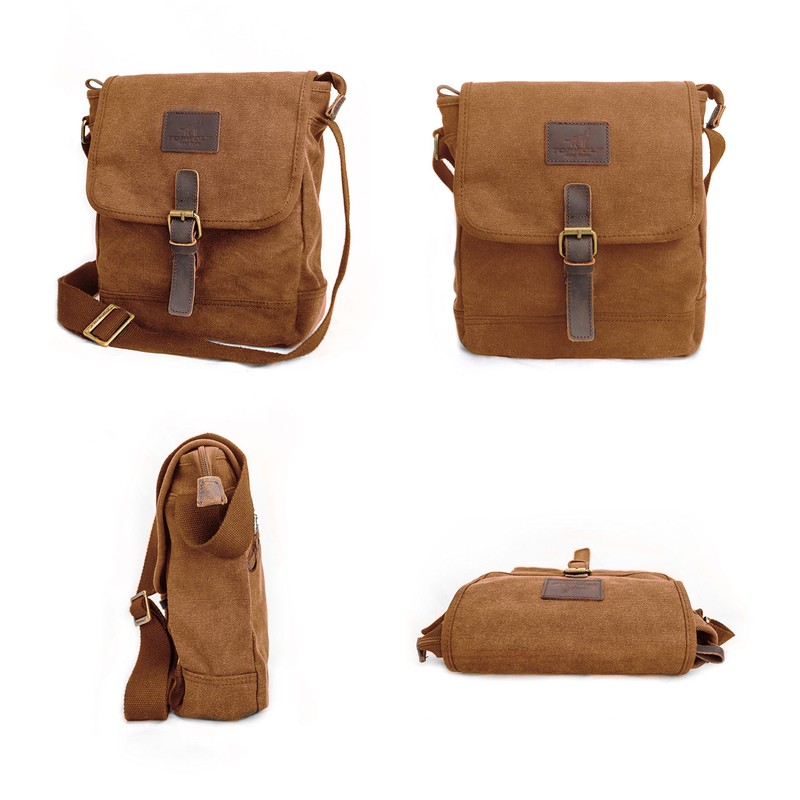 TOPWOLFS Canvas Messenger Bag Small Crossbody Bag Casual Travel Working Tools Bag Shoulder Bag Hold Phone Handset Anti Theft