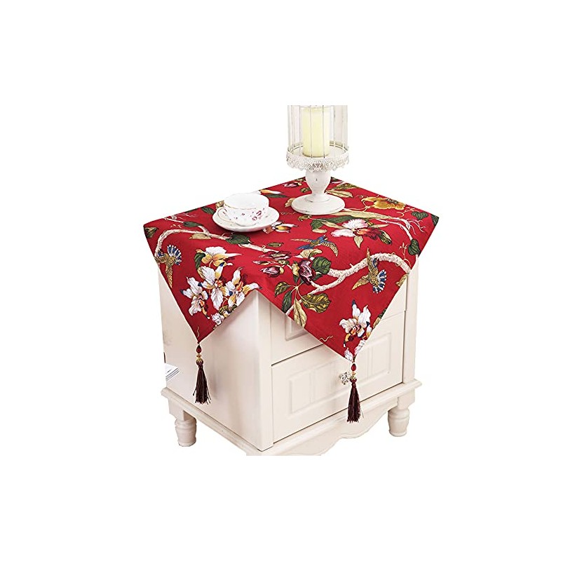 Topwon Bedside Tablecloth Rustic Table Cover for Nightstand End Table Dust Proof Cloth with Tassels (Red)