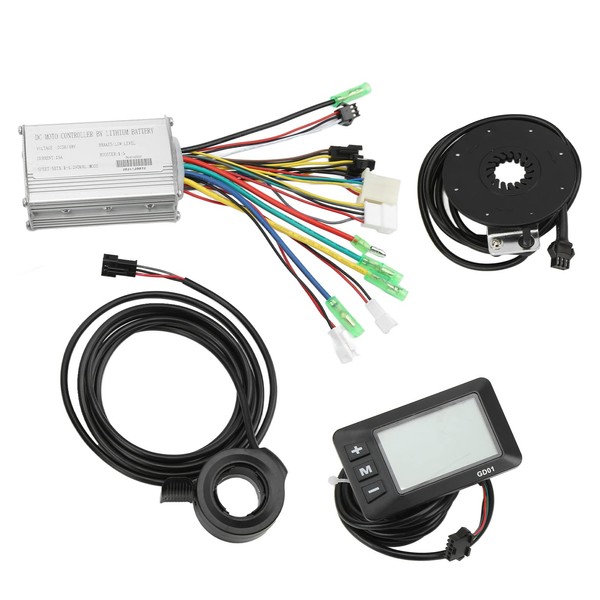 Topyond 36V 48V Ebike Controller Kit, Electric Bicycles Brushless Controller Kit 15A Waterproof Motor Controller, 250W 350W LCD‑GD01 Panel Thumb Throttle E Bikes Conversion Power Assist Sensor Kit