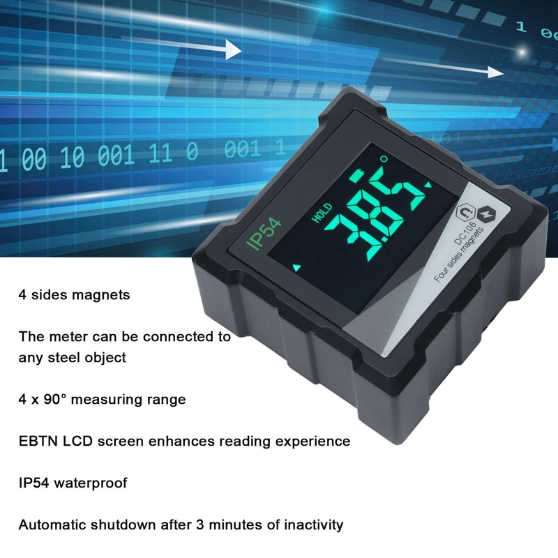 - Other Functions: Additional functions include an IP54 waterproof rating, automatic inversion, and automatic shutdown after 3 minutes of inactivity, adding convenience and extending the angle measuring tool's operational lifespan