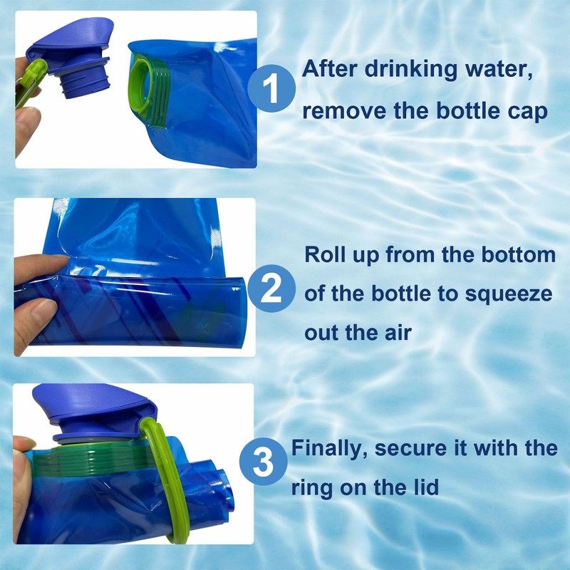 - 【Breite Anwendung】Toll für reisen, festivals, auftritte, ausflüge, wanderungen und camping - Falten Sie die Flasche zusammen und nehmen Sie die Flasche durch die Flughafenkontrolle mit, um Platz zu sparen, und füllen Sie sie dann am Zielort wieder auf. Mit einem Gewicht von nur 20 g ist sie fast halb so schwer wie eine leere Standard-Wasserflasche.
