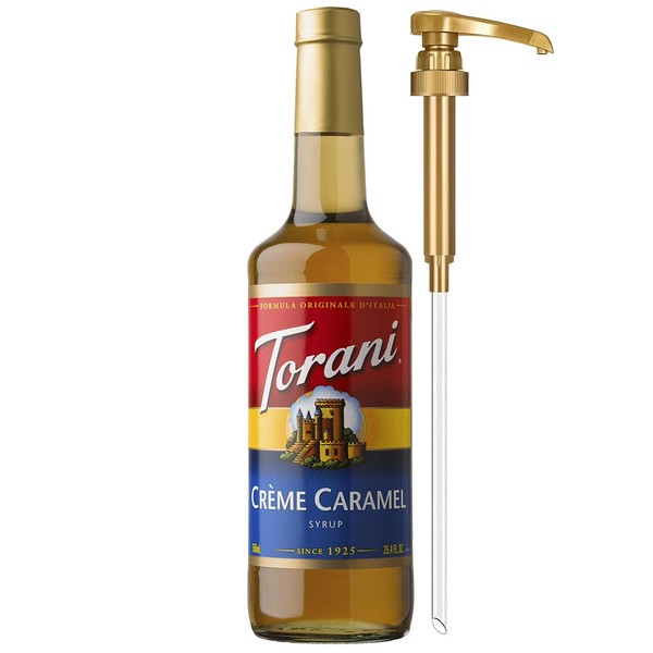 Torani Coffee Syrup, Crème Caramel Flavoring for Drinks, Glass Bottle with Pump Included, 25.4 Oz