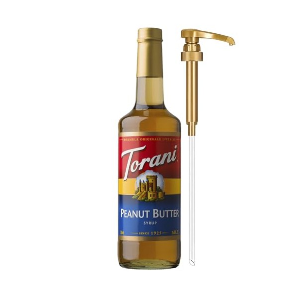 Torani Coffee Syrup, Peanut Butter Flavoring for Drinks, Glass Bottle with Pump Included, 25.4 Fl Oz