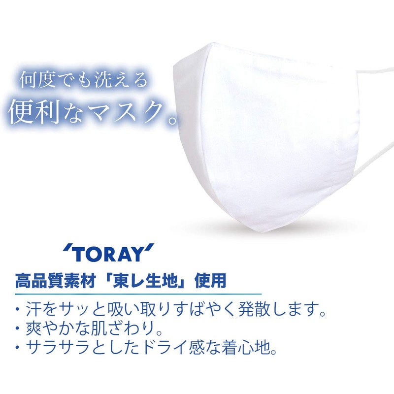 Toray Cool to the Touch, Antibacterial, Antiviral, 3D Cloth Mask, Summer Mask, wht, Free Size