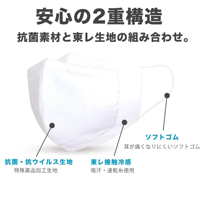 Toray Cool to the Touch, Antibacterial, Antiviral, 3D Cloth Mask, Summer Mask, wht, Free Size