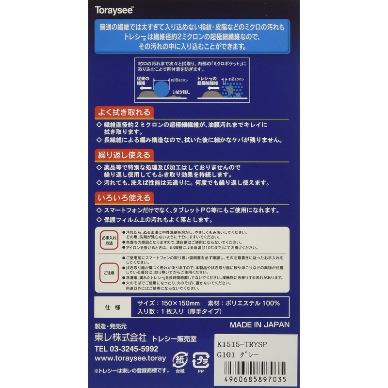 Toray K1515-TRYSP-G101 Cleaning Cloth for Smartphones, Gray