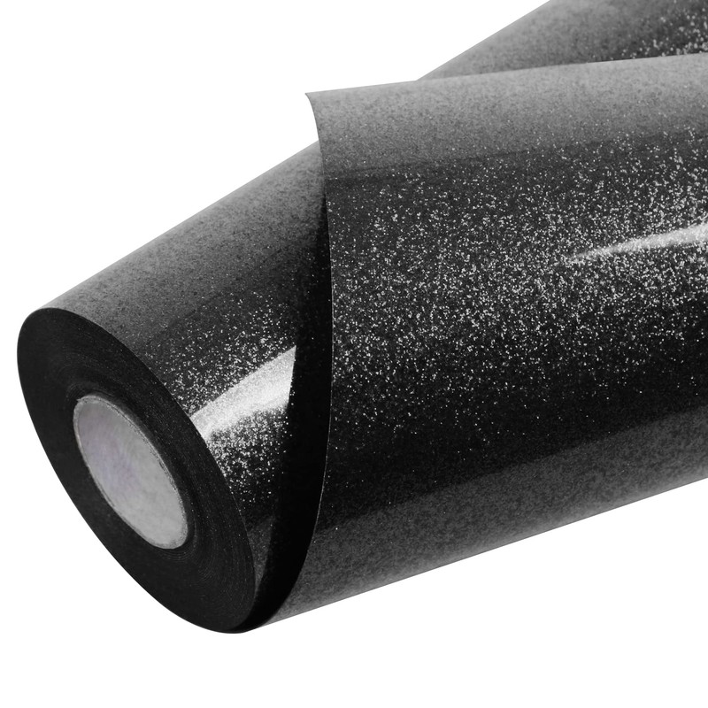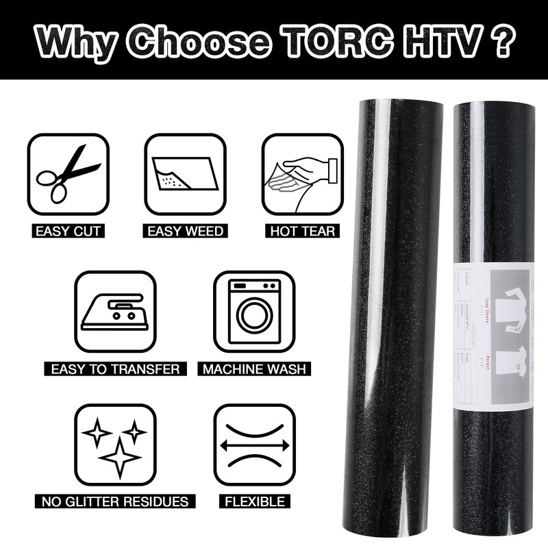 TORC Black Glitter HTV Heat Transfer Vinyl Roll 12 inch x 20 ft Iron on Vinyl for T Shirts Crafts Bulk