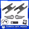 Our TORCH Off Road Forged torsion keys are built nearly twice as strong as your factory keys to ensure that they hold up to any road you're driving on. They're engineered with just the right indexing so that you can adjust up to 3" of lift from the factory ride height without compromising ride quality. The rear lift is adjustable for either 2" or 3" of lift. Built using laser cut 1/4" steel for precision and durability along with a long lasting rust proof finish.