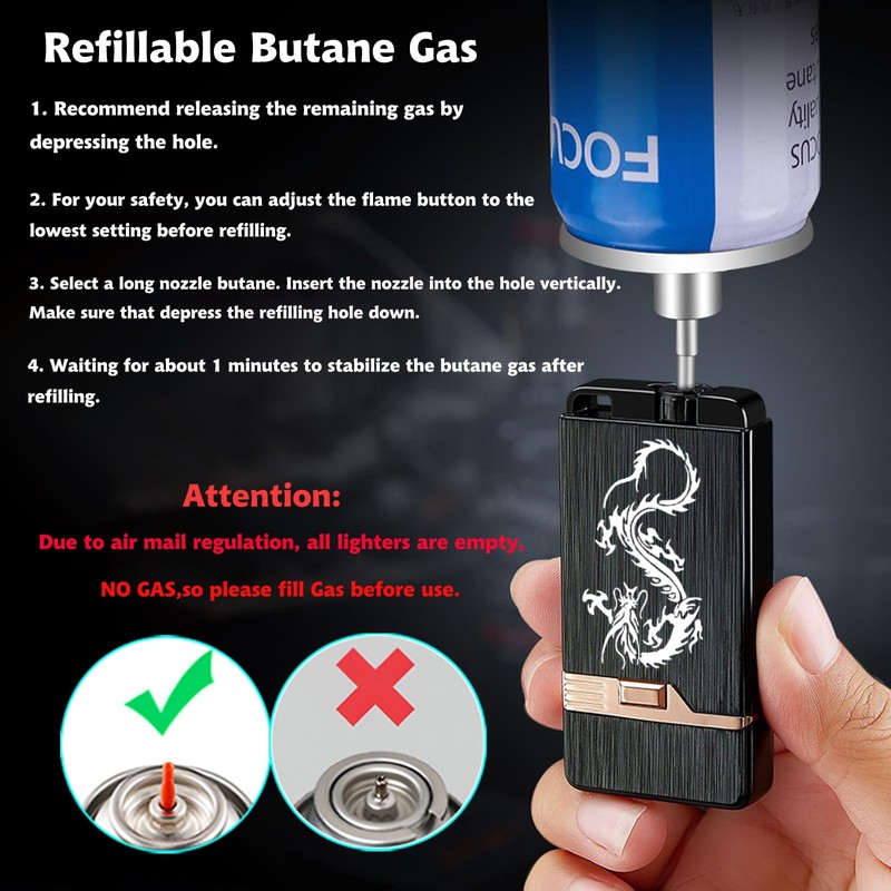 - 【Fashion Dragon Lighter】According to the creative dragon shape design,Ergonomic design provides comfort to your hand and protects your fingers from being burned. Soft flame straight flame, double fire design, one lighter, enjoy two ways of lighting,The frosted shell is comfortable to the touch.it can be easily put in your handbag or pocket and won't take up too much space.