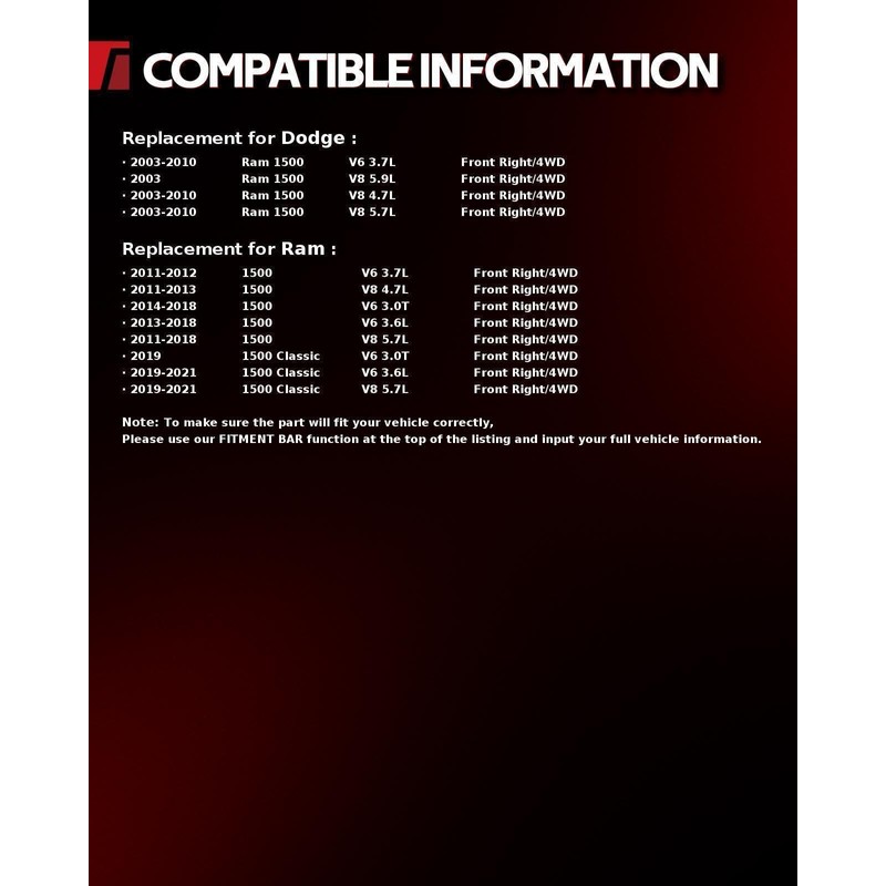 - 【Fitment】 This steering knuckle compatible with 2011-2018 1500, 2003-2010 Ram 1500, 2019-2021 1500 Classic Replaces 698238