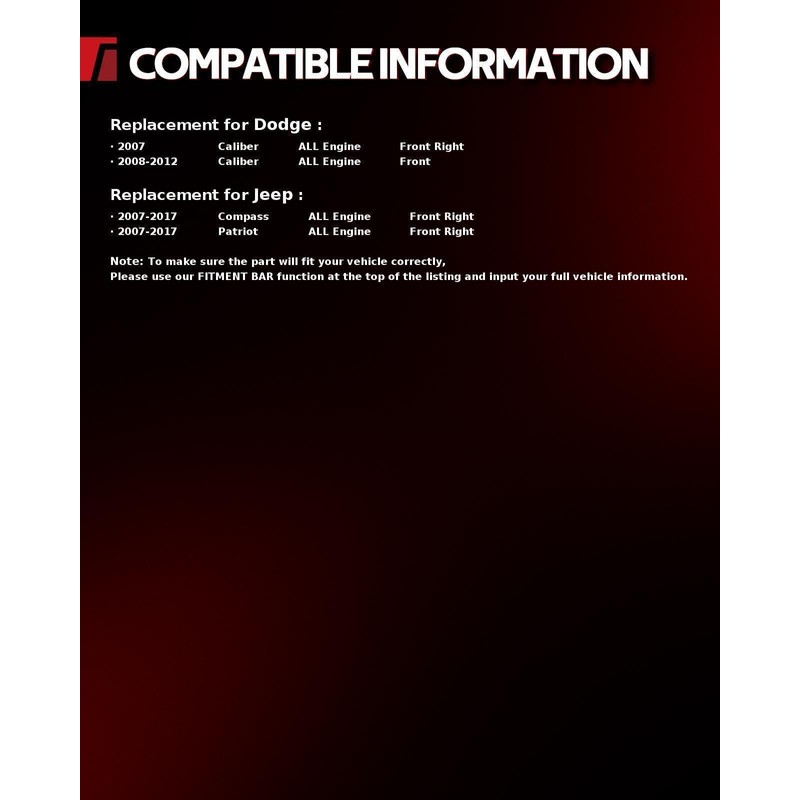 - 【Fitment】 This steering knuckle & wheel bearing hub assembly compatible with 2007-2017 Patriot, 2007-2017 Compass, 2007-2012 Caliber Replaces 698-410