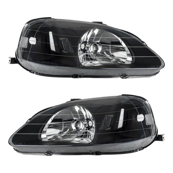 Torchbeam Headlight Assembly, Replacement for Civic 1999-2000, Bumper Headlamp Black Housing Clear Reflector