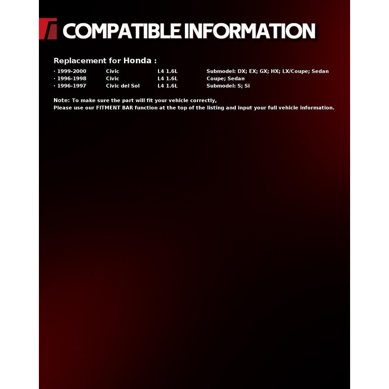 - 【Compatibility】Compatible with Civic 1996-2000 1.6L, Civic del Sol 1996-1997 1.6L