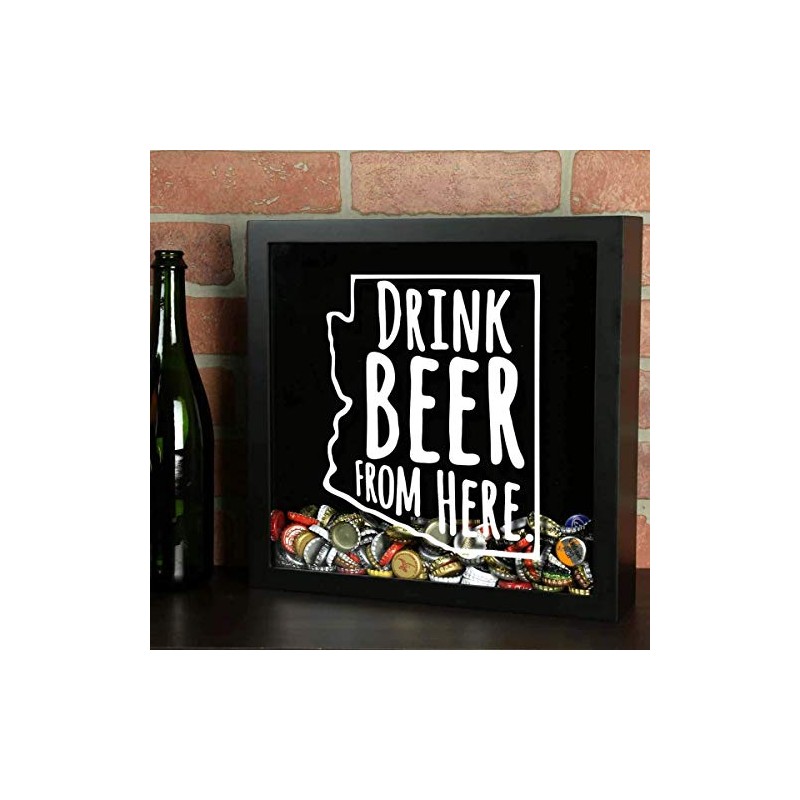 Torched Drink Beer from Here Beer Cap Shadow Box Holder Hanging Display Case Frame Wall Mount Decor Art, Beer Lovers Collectors Gift for Men, Arizona