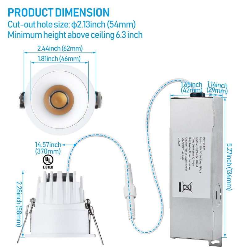 - Air Tight & IC Rated: Our 2 inch downlight is designed with excellent airtightness and IC rating, effectively preventing dust infiltration and allowing secure installation in direct contact with insulation in older homes