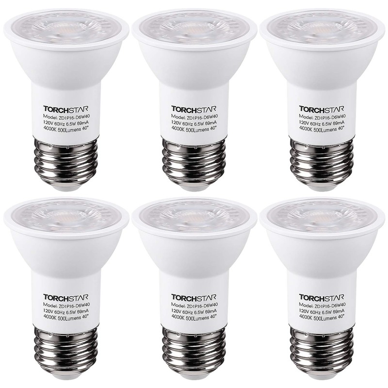 TORCHSTAR LED PAR16 Spot Light Bulbs, 6.5W(50W Eqv.), 500lm E26 Medium Base Dimmable Spotlight, 40° Beam Angle, UL & Energy Star Listed Track Light Bulb, 4000K Cool White, Pack of 6