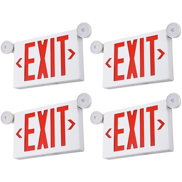TORCHSTAR Red LED Exit Sign with Emergency Lights, UL 924, Emergency Exit Light with Battery Backup, Adjustable Heads, Fire Exit Sign with Lights, Double Face, AC 120/277V, Damp Location, Pack of 4