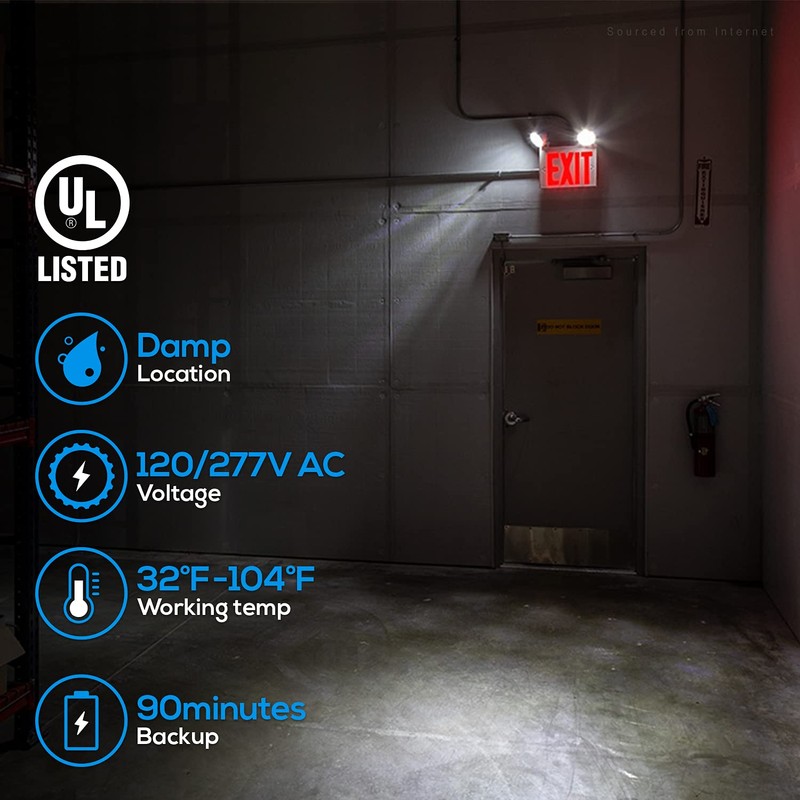 - đź’ˇ UL 924: Complies with US Standard Emergency Lighting and Exit Light Combo Regulations, 120V/277V circuit for use at home, commercial and industrial lighting