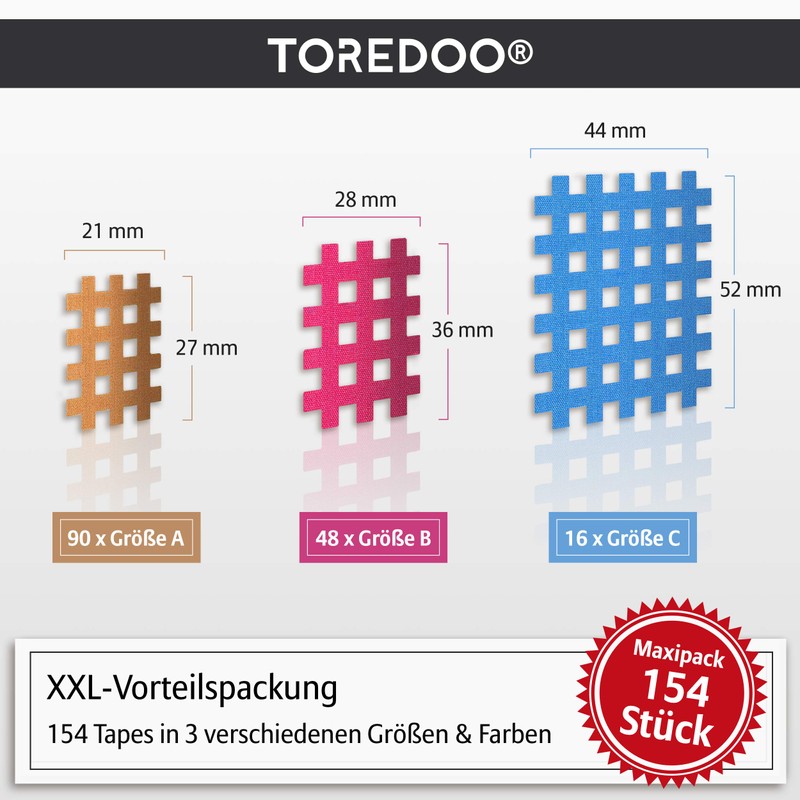 Toredoo Cross Tape, Acupuncture Plasters, Acupuncture Crosstapes – Small / Large, Mix Box, 136 Plasters, Type A / B / C, Blue / Pink / Skin – Optimal Trigger Points for Treatment of Pain
