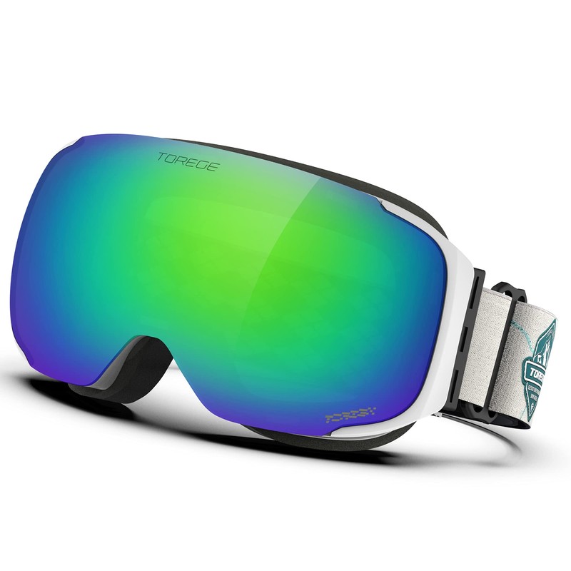 TOREGE Ski Goggles Anti Fog Dual-Layer UV Protection Snowboard Goggles OTG Snow Goggles for Men Women TG04 (Matte White Frame & Revo Green Lens)