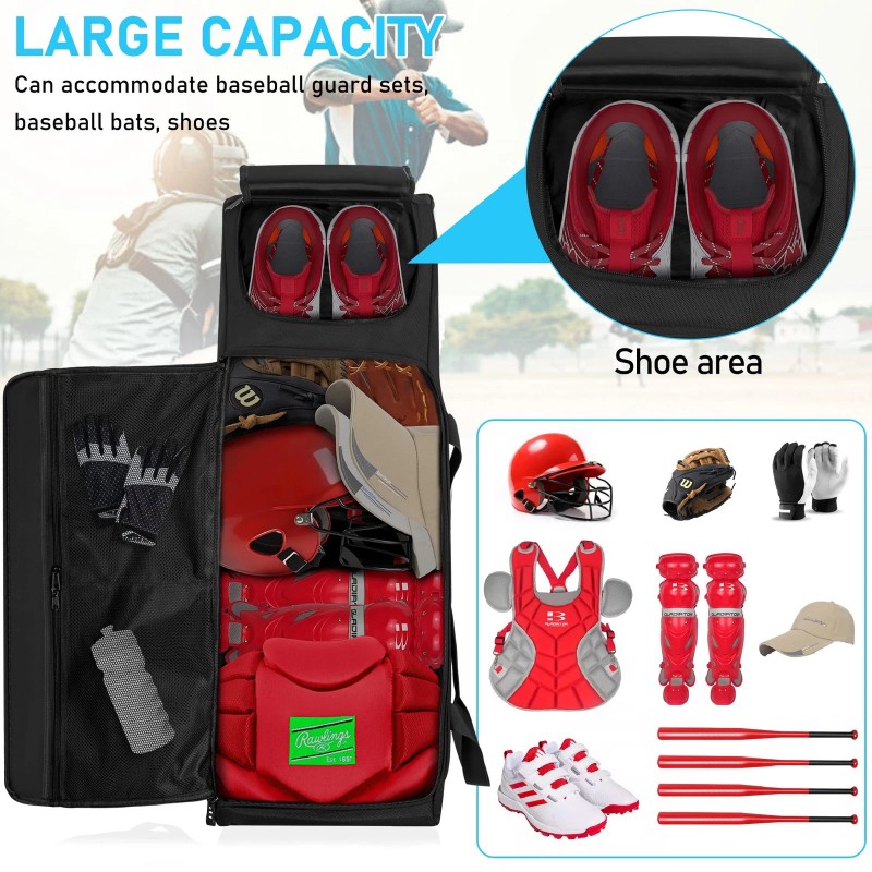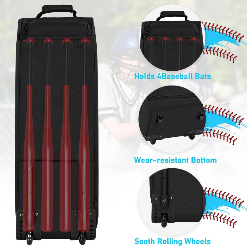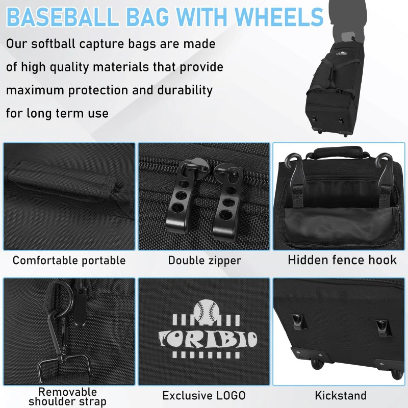TORIBIO Large Rolling Baseball Bag with Wheels,Softbal
