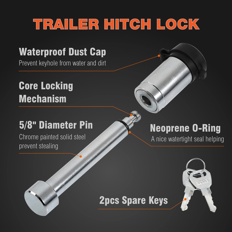 - trailer lock pin has an advanced hardened steel structure; chromed plating provides excellent rust and corrosion resistance