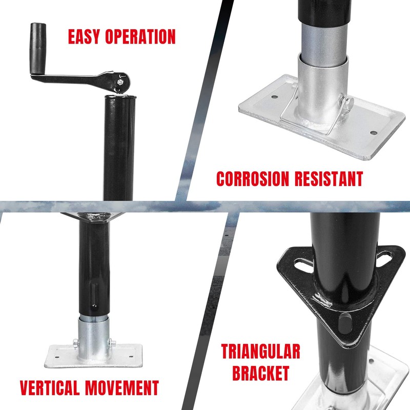 - Adjustable Height: Ttrailer jack offers a lifting range of Adjustable height from 10.5"-24.5" and fits trailer tongues 3" to 4"to your diverse needs. With multi-level adjustment, it ensures your trailer remains level on various road surfaces.