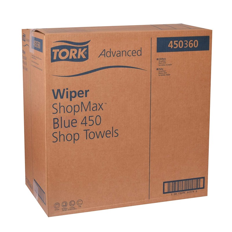 Tork Advanced 450360 ShopMax Wiper 450, Roll Towel, 1-Ply, 11" Width x 9.4" Length, Blue/White (Case of 30 Rolls, 60 per Roll, 1800 Towels) by Tork Store