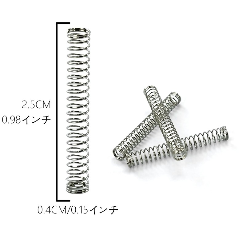- Size: Wire diameter (0.02 inches (0.5 mm), outer diameter (0.1 inches (3 mm), length (1.0 inches (2