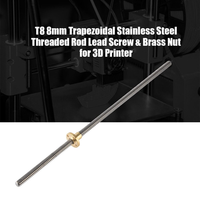 Tornillo de Varilla, T8 8 mm Trapezoidal de Acero Inoxidable Varilla roscada Tornillo de Plomo/Tuerca de latón para Impresora 3D(330mm)