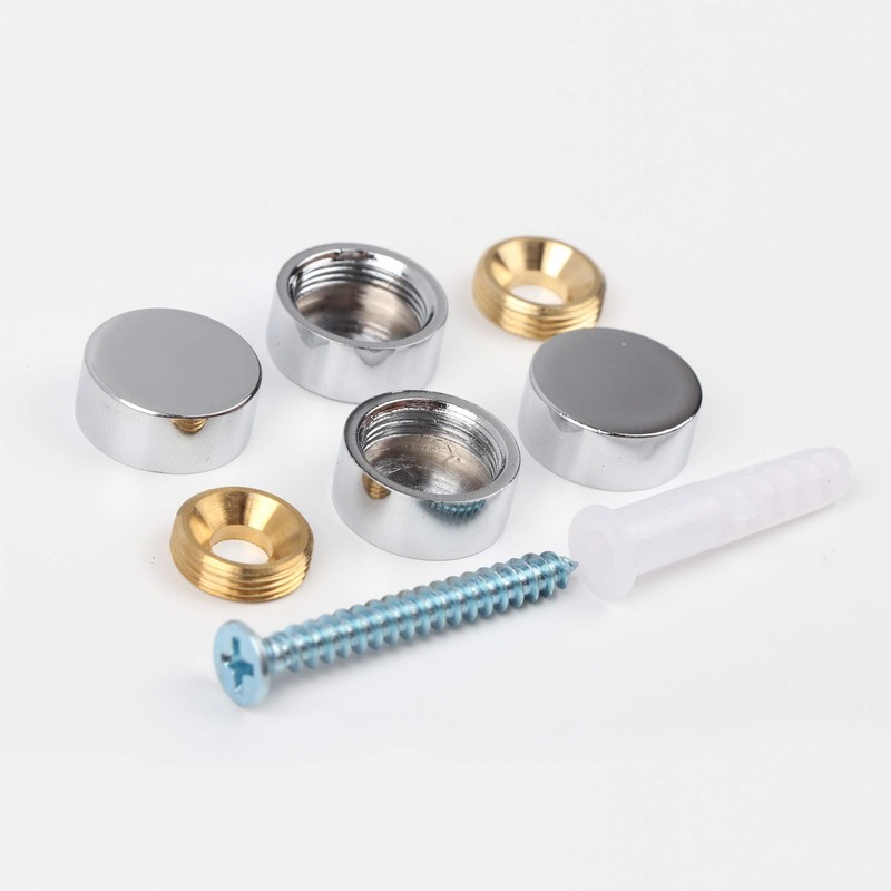 Tornillos de espejo, tapa de latón decorativa, clavos de espejo, cromo pulido, 4 unidades, Circle:0.6"
