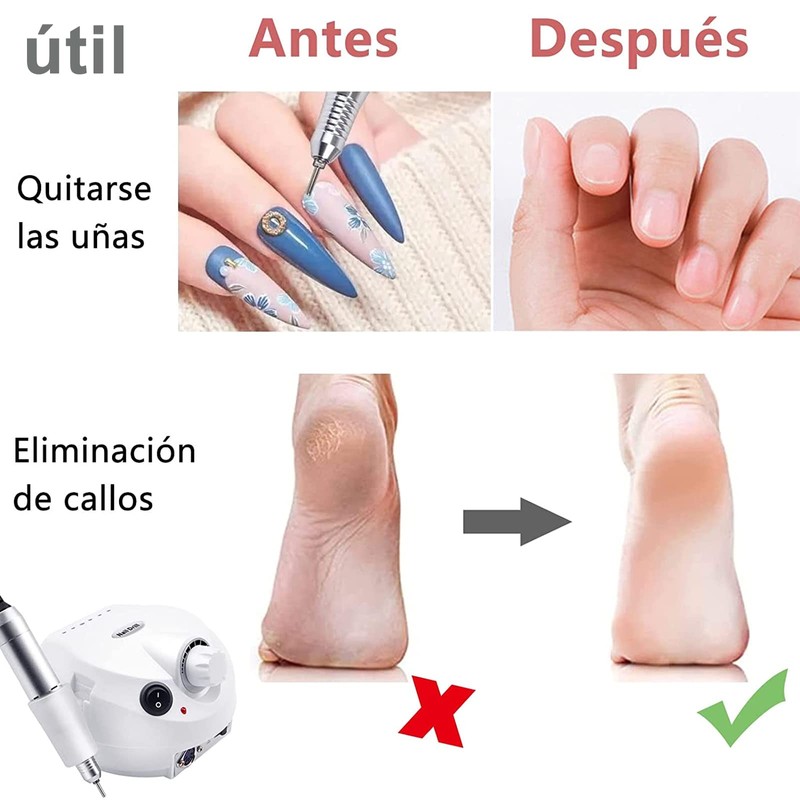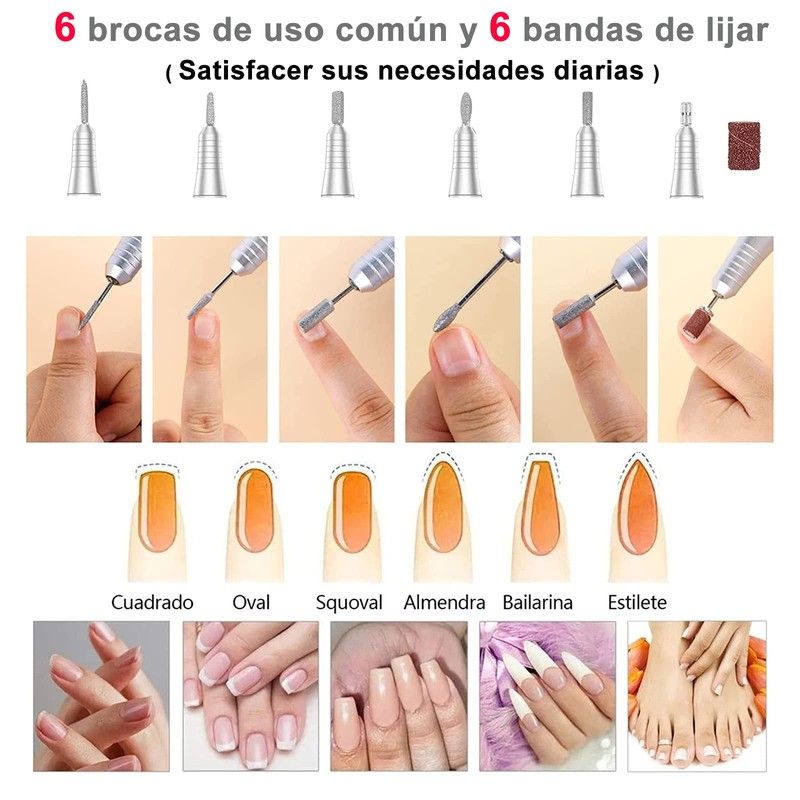 - 💎👑5【Amplia Gama de Usos】El pulidor de uñas es rico en accesorios y totalmente funcional, muy adecuado para pulir y podar uñas acrílicas, uñas de gel, uñas naturales, además de para eliminar la piel muerta, callos, no hay dificultad para usar, muy simple. Si tiene alguna pregunta, póngase en contacto con nosotros para ayudarle a resolver su problema. Muchas gracias por su comprensión y apoyo.