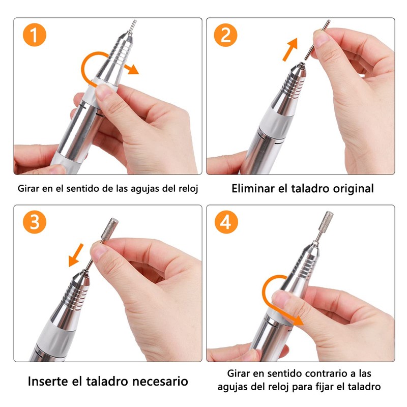 2. se pueden ajustar varias velocidades, entre 0 - 25000 rpm, se puede girar en ambas direcciones, adaptarse a los usuarios con diferentes hábitos de uso, se puede ajustar la velocidad a voluntad para lograr diferentes necesidades de manicura.