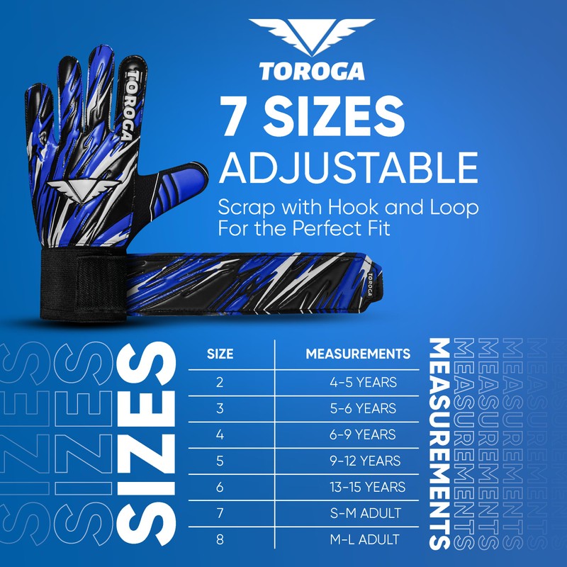 # Strong Grip: TOROGA boys football goalie gloves are made up of high quality composite materials of EVA and latex Foam. Palm area of football goalkeeper gloves kids with latex provides high viscosity and reduces slipping level that may help to improve your grip in matches. ✔