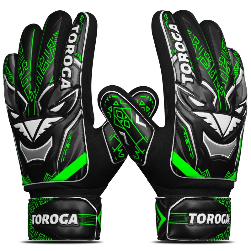 - 🌟Unique Funky Design: TOROGA kids goalkeeper gloves has a stylish eye catching 3D design and logo embossed on it. Fingersave Goalkeeper Gloves men have 4mm latex on plam providing more grip while holding the football goalie gloves kids.