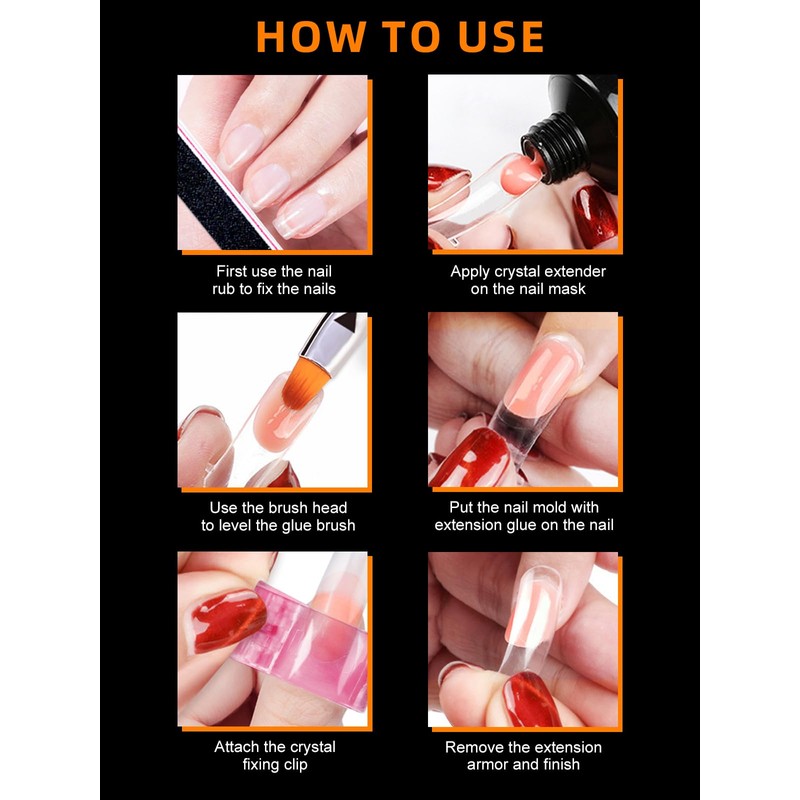 3.Reusable. Clean the false nail mold with nail polish remover after using and you can use it next time.