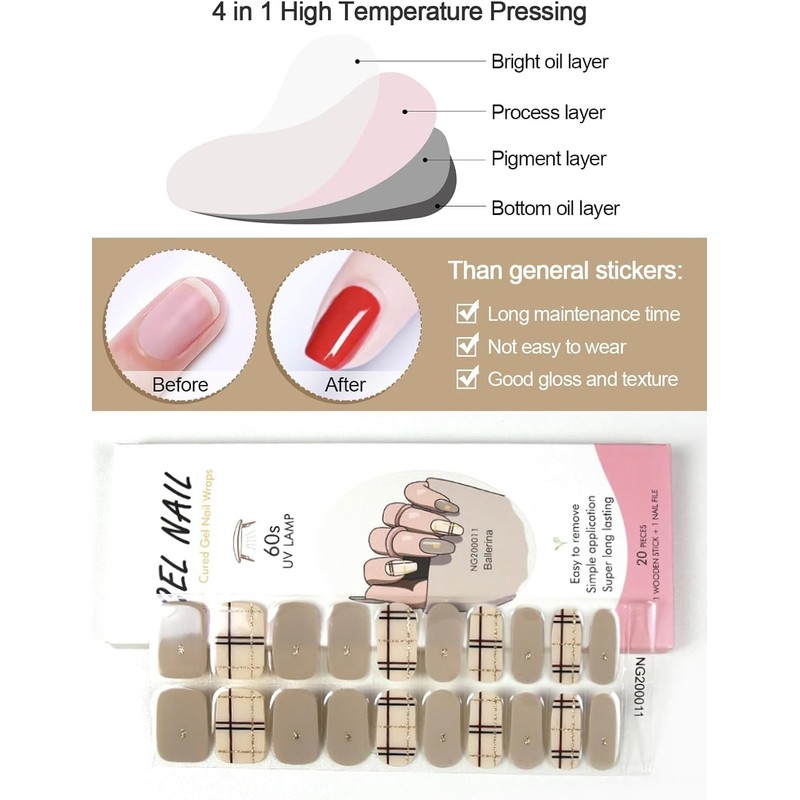 - 【Salon-Qualität Gel Nail Strips】Jeder Gel Nagelstreifen enthält 20pcs Nagel Wraps. Gel-Nagel-Aufkleber mit 1-Nagelfeile und 1-Nagel-Stick, die Ihre Nailart-Dekoration bequemer machen.